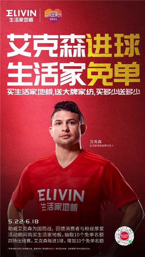目前,正值生活家地板全民戀家節期間,活動主辦方推出了“買生活家地板,送大牌家紡,”鉅惠福利,買多少送多少,引得消費者們紛紛“剁手”;除此,生活家地板還放送一波福利——“艾克森進球,生活家免單”,助威艾克森為國足征戰。5月22日-6月18日期間購買生活家地板,抽取10個免單名額,四場出線賽,艾克森每進一球,將增加10個免單名額。(注:免單金額以實際訂單金額為準,每單免單上限金額6666元;特價品及電商、家裝渠道不參與送家紡活動)。與此同時,生活家地板也在微博平臺發起了為艾克森助力活動,關注并轉發置頂微博活動,就有機會獲得生活家地板送出的華為Mate40手機一臺,10個幸運名額,中獎率高。
