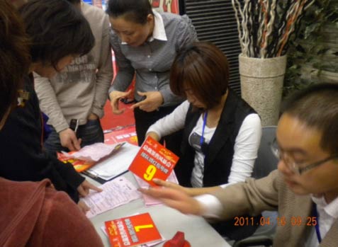 2011年4月16日生活家地板輝煌15年、感恩中國(guó)行生活家地板總裁簽售風(fēng)暴會(huì)揚(yáng)州站在揚(yáng)州紅星美凱龍建材樓拉開帷幕,本次促銷活動(dòng)得到了生活家地板華東事業(yè)部的大力的支持。由于活動(dòng)設(shè)定了排隊(duì)領(lǐng)紅包的優(yōu)惠方案,早晨八點(diǎn)鐘不到,就有部分生活家地板的忠實(shí)消費(fèi)者來到紅星美凱龍的大門前領(lǐng)取排隊(duì)號(hào)牌,等待領(lǐng)取喜慶大紅包。