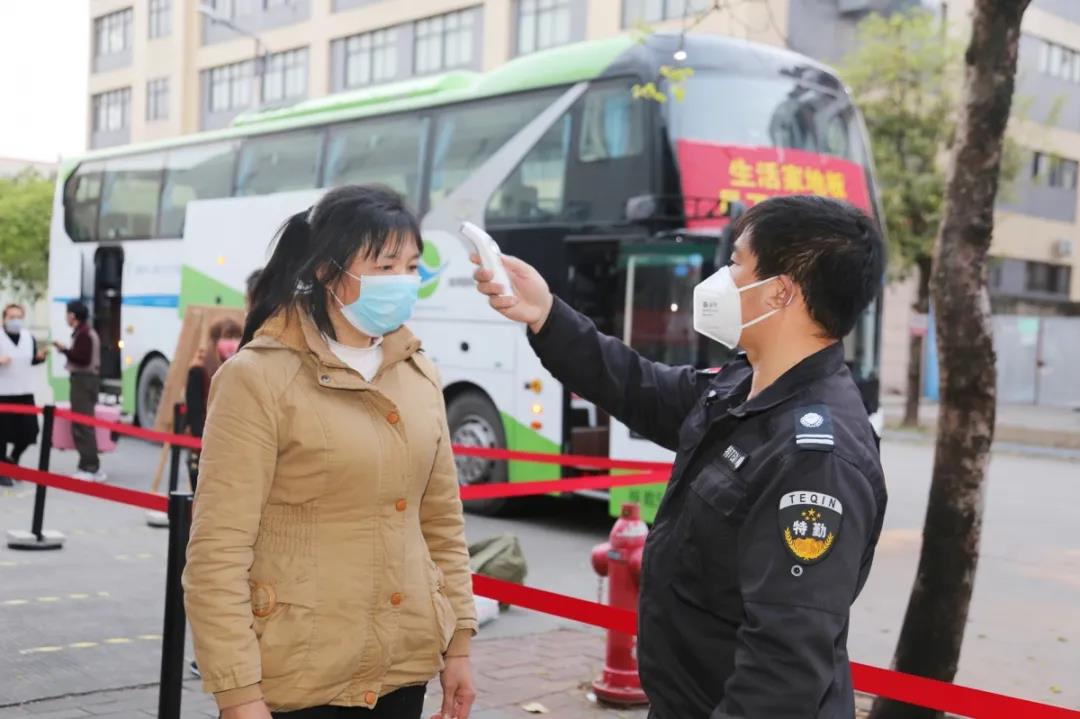 2月22日早上7點,生活家地板員工返崗專車從貴州順利出發。為了做好疫情防控工作,公司不僅專車接送,還對外地員工做好“一人一冊”檔案管理,尤其是明確其過往14天的行蹤軌跡,大巴出發前均確保每位上車的員工身體健康,為每位返工同事定時測量體溫,在返程路上也做好各種防護。到達廠區后,公司安排專人負責對員工進行了信息登記和體溫測量,確認無誤后,發放企業員工上崗通行證。