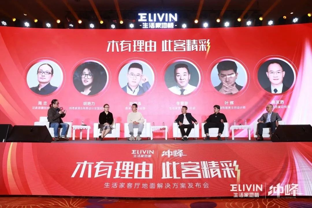 網易家居&網易設計全國總編輯胡艷力、泛家居圈創始人周忠、生活家地板營銷中心總監李攀登、尚層裝飾首席主創設計師葉輝、鼎承傳媒總經理陸錦添、江蘇生活家總經理楊發泗齊聚一堂,從各自的專業角度探討客廳地面材料行業發展趨勢,他們表示對生活家客廳地板的未來發展之路充滿信心。