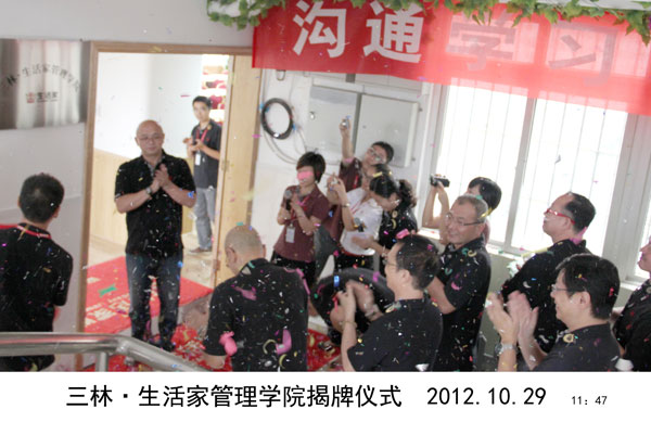人力資源中心總監王立民在儀式上期許自己的團隊要改變信念"我們自己有了一桶水,才能分享一杯水",并再次承諾"人力資源中心所有成員應當不斷的努力學習,為三林生活家集團源源不斷輸送知識、輸送技能、輸送人才"。作為培訓室改造項目的負責人,巴洛克(實木多層)事業部總經理徐華勇表示,"作為產能部門,我們不但要為公司提供優質產品,更要為公司提供優質服務,改變世界先要改變自我,做培訓室的同時,我們也在改變自己,成長是終身的"。